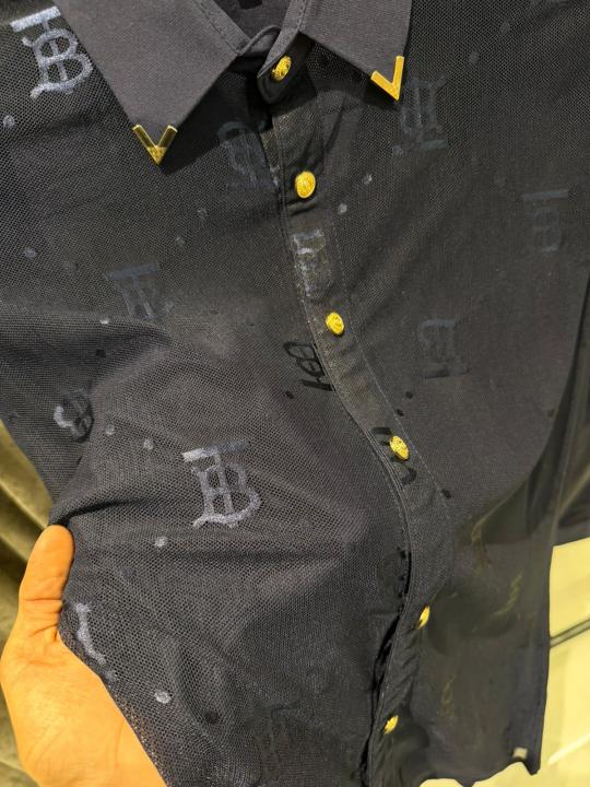 Gucc_i All Over Velvet Monogram Embossed Imported Jersey Lycra Polo T-shirt